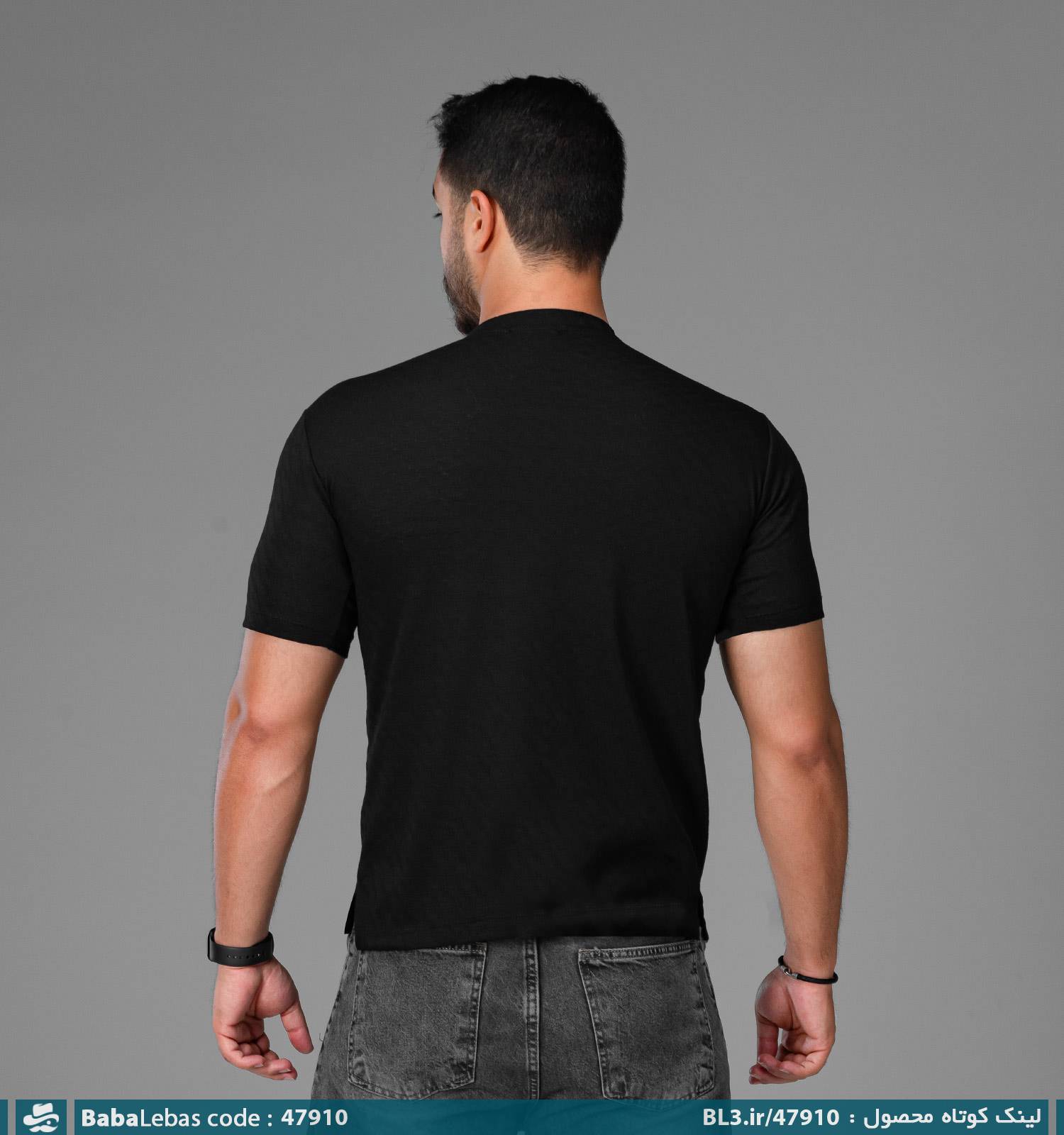 تیشرت یقه گرد مردانه مشکی مراکشی جیب دار ساده مدل 47910