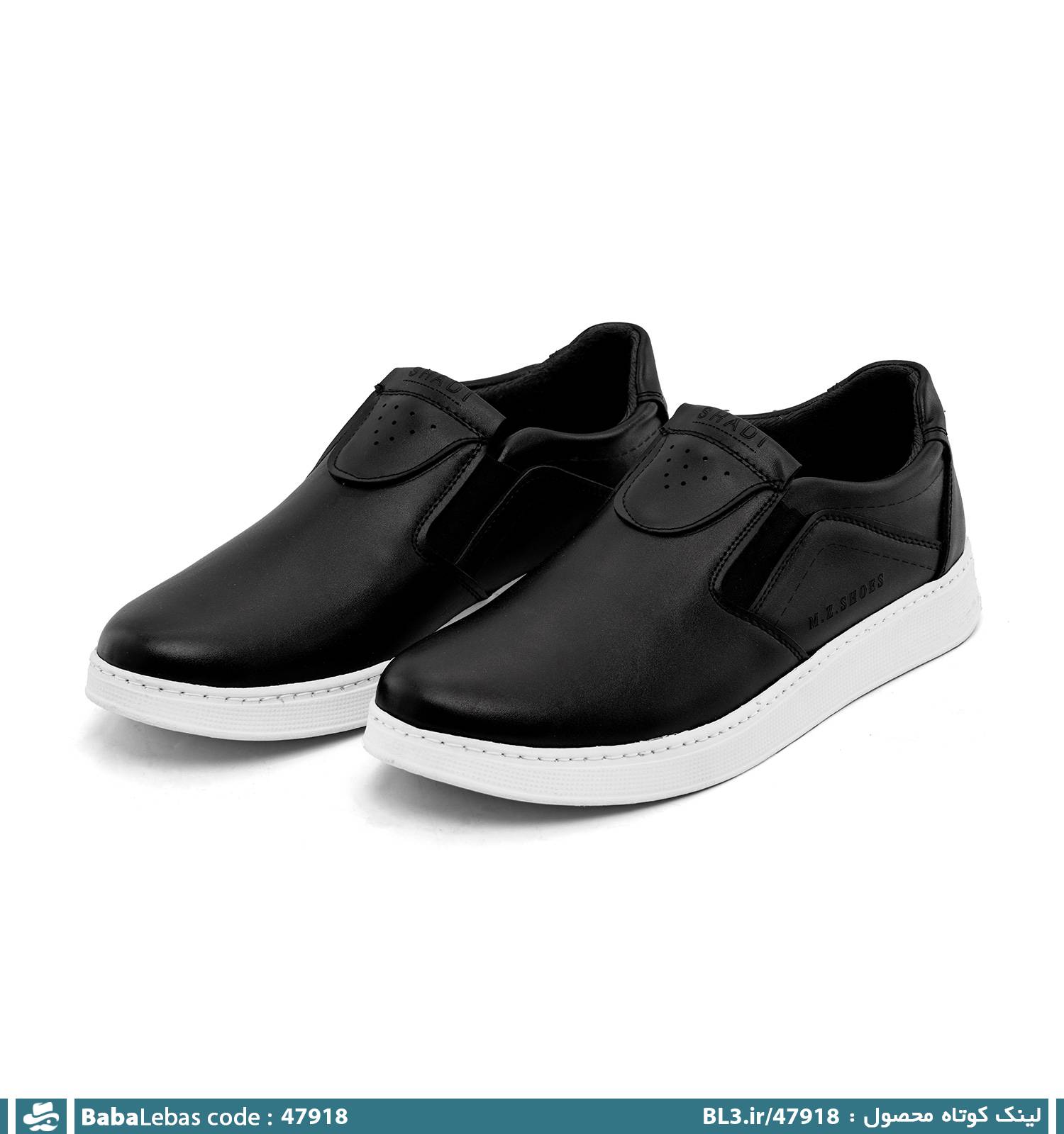 کفش روزمره چرم مصنوعی مردانه مشکی بدون بند مدل 47918