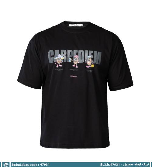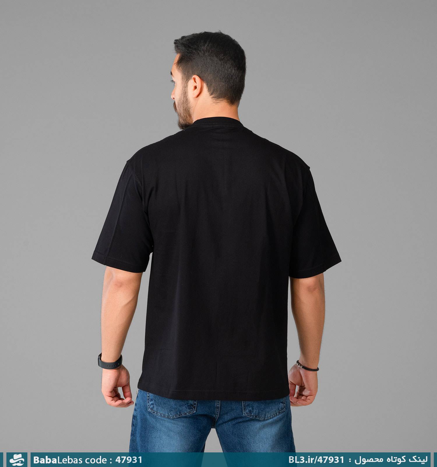 تیشرت نخ پنبه یقه گرد مردانه مشکی طرح دار مدل 47931