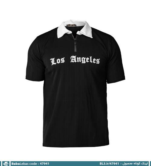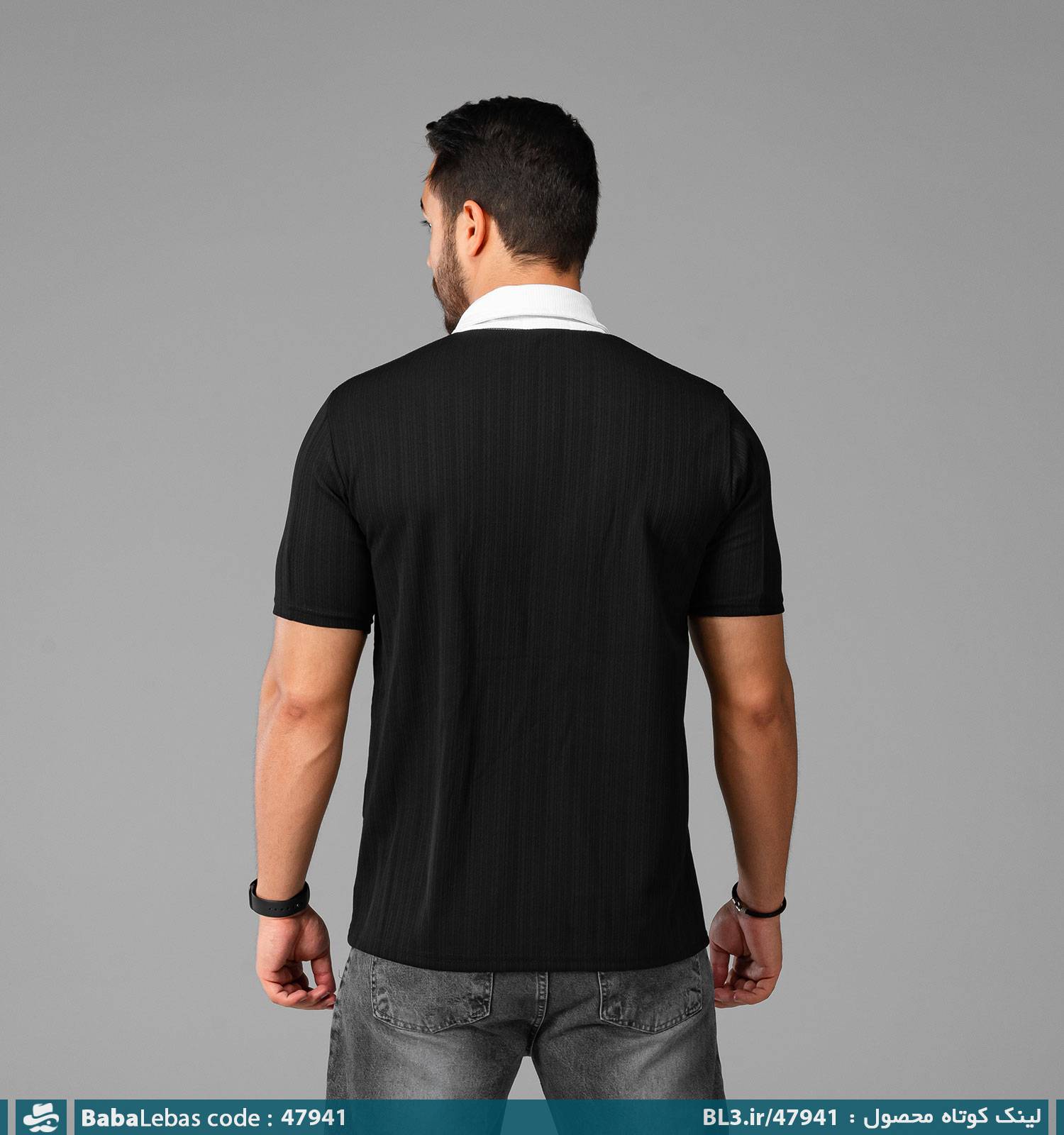 تیشرت مراکشی یقه دار مردانه مشکی طرح دار مدل 47941