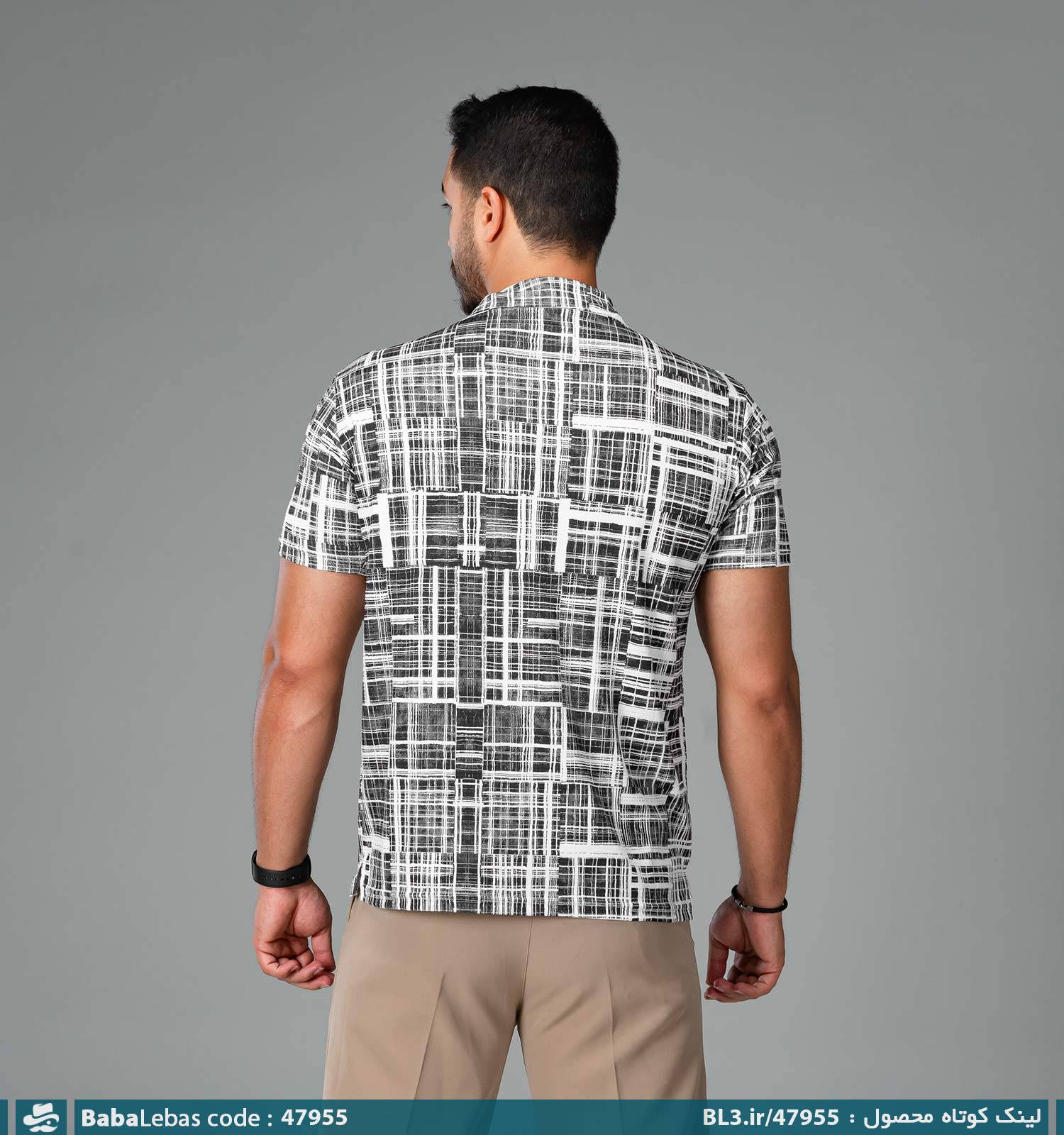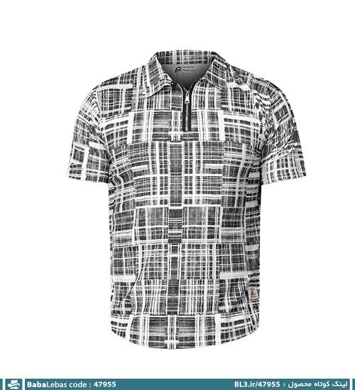 تیشرت نخ پنبه نیم زیپ یقه دار مردانه مشکی چهارخونه مدل 47955