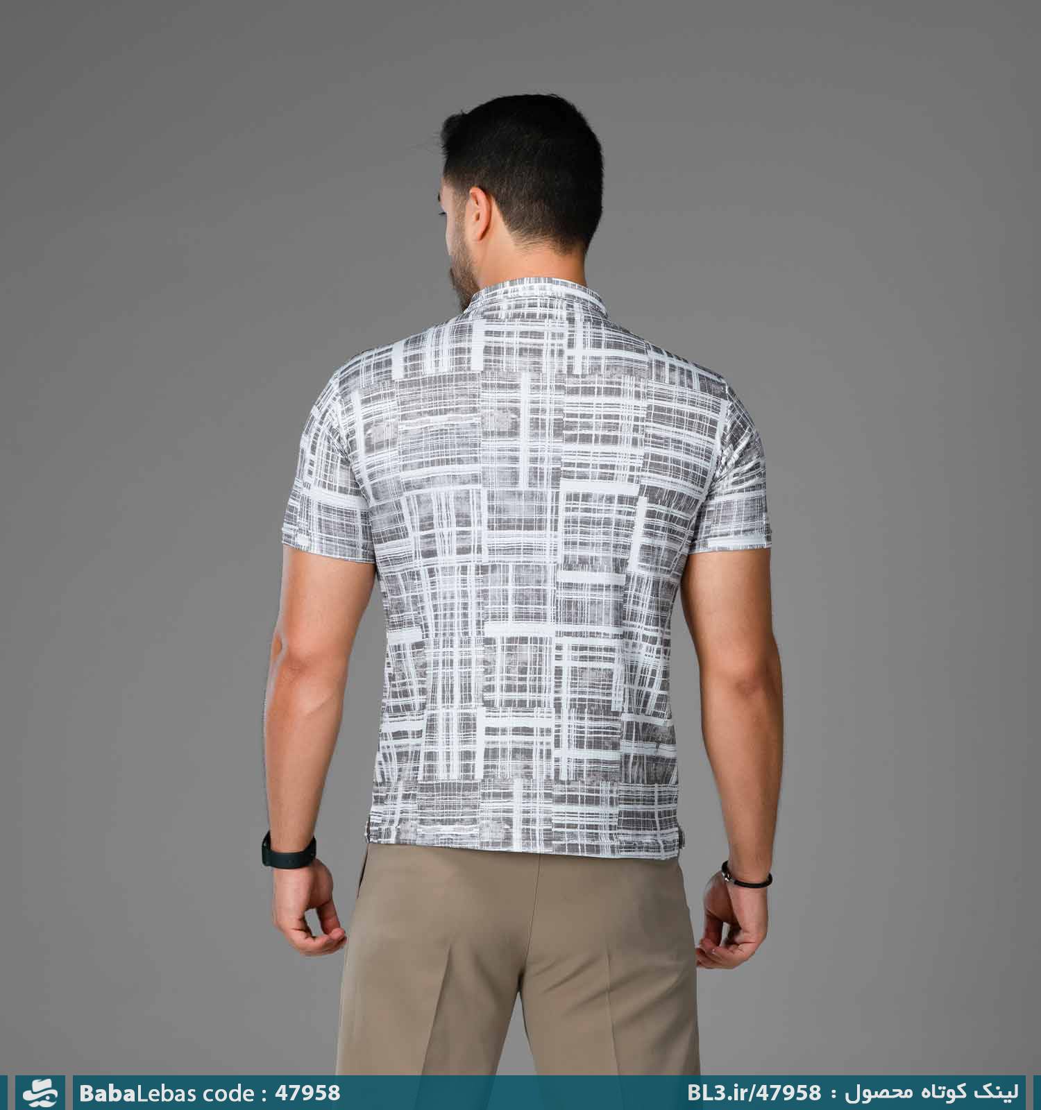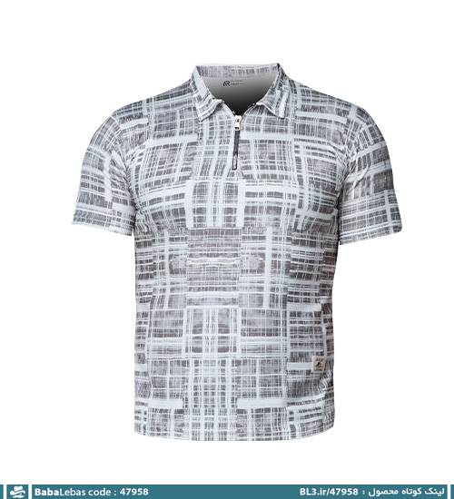 تیشرت نخ پنبه نیم زیپ یقه دار مردانه چهارخونه مدل 47958