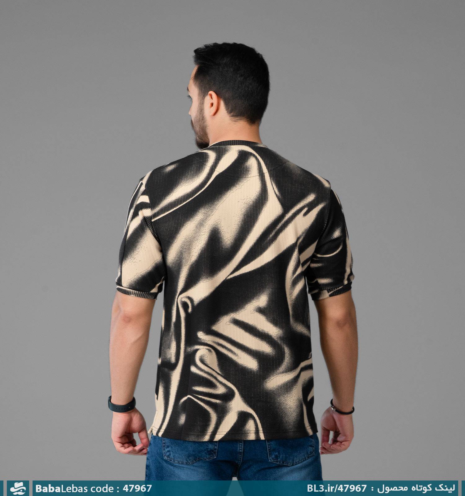 تیشرت یقه گرد مردانه طرح دار نخ پنبه مدل 47967