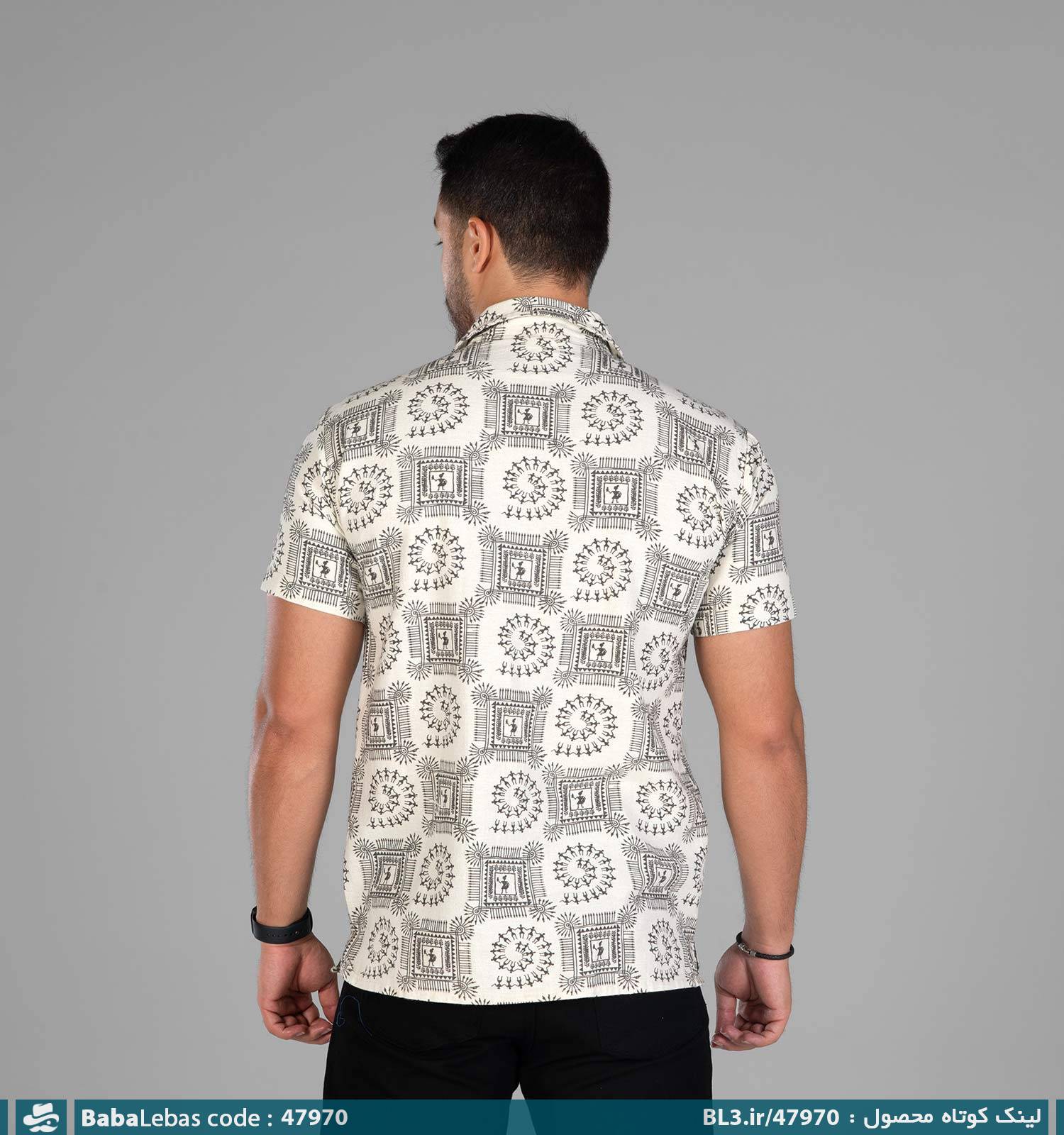 پیراهن اسپرت لینن مردانه آستین کوتاه طرح دار مدل 47970