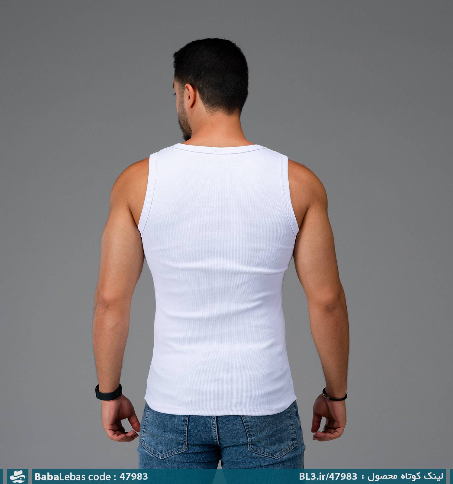 رکابی مردانه سفید ساده یقه گرد مدل 47983