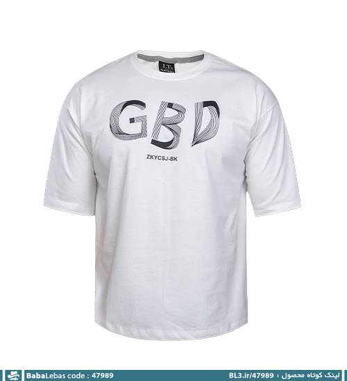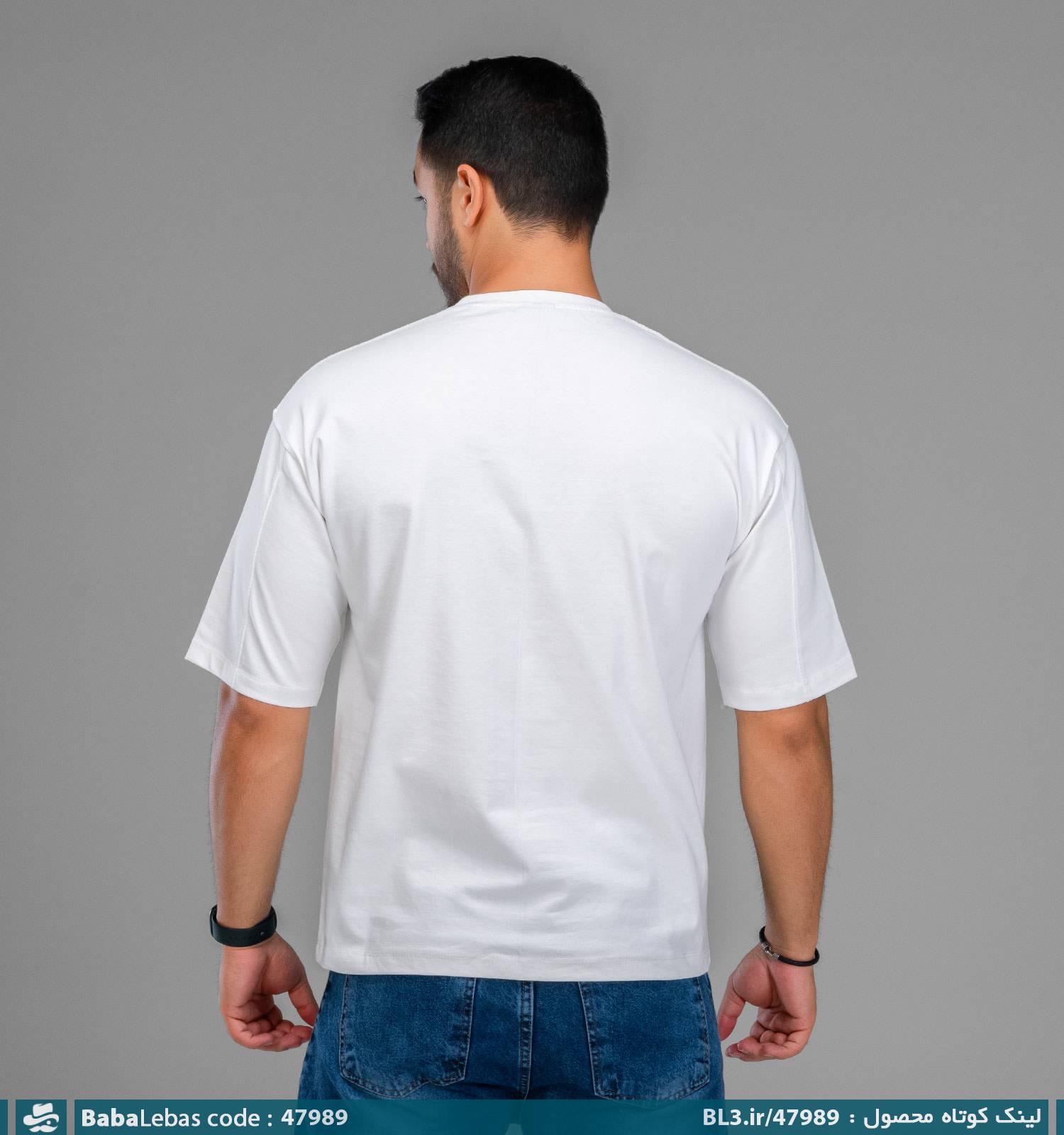 تیشرت یقه گرد مردانه سفید ماکان طرح دار مدل 47989