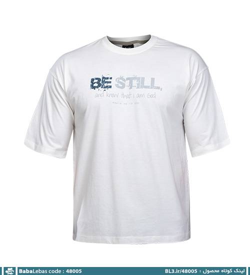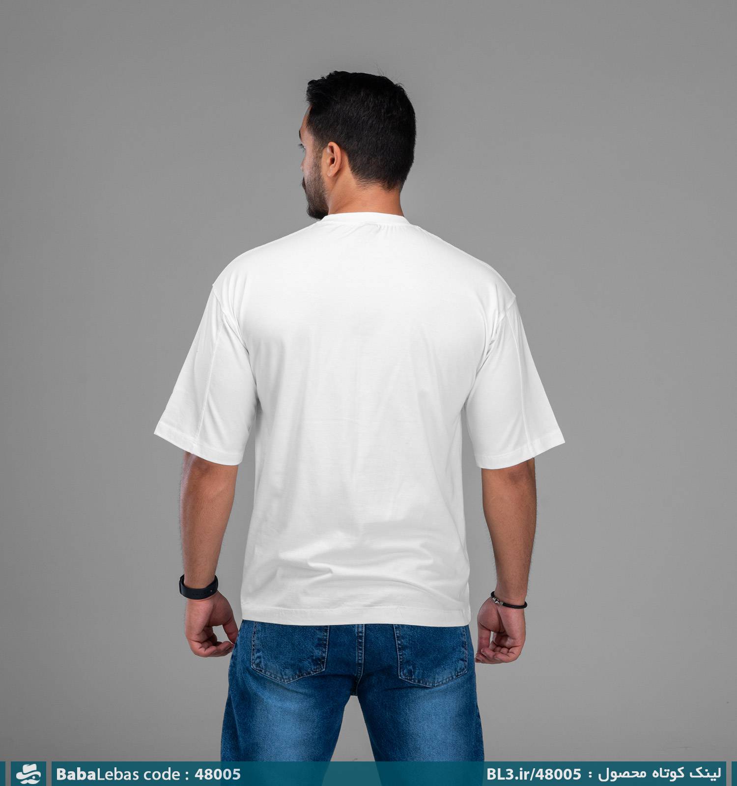 تیشرت یقه گرد مردانه سفید نخ پنبه طرح دار مدل 48005