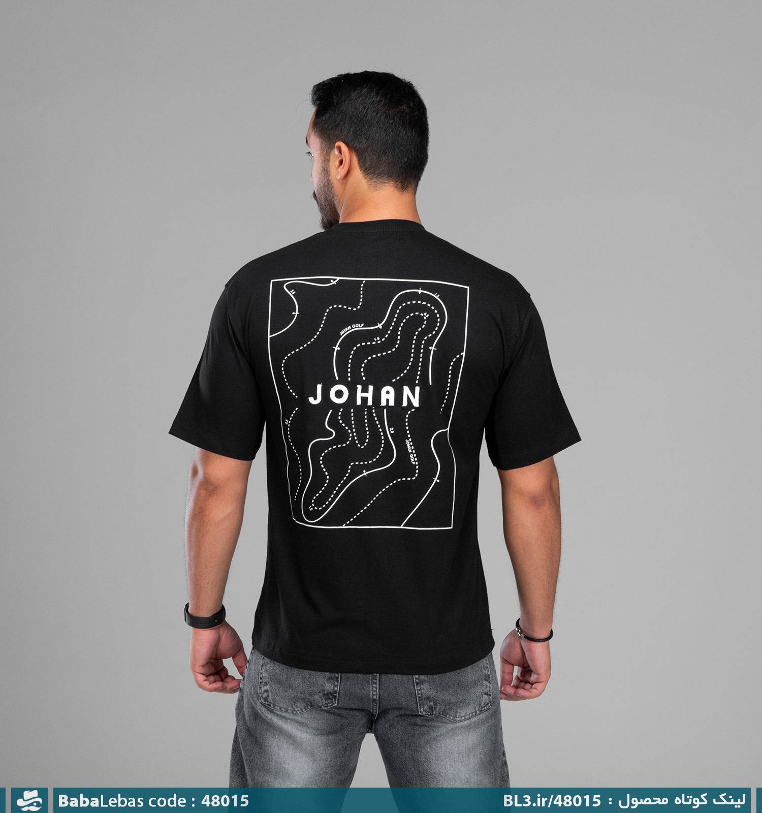تیشرت یقه گرد مردانه مشکی نخ پنبه طرح دار مدل 48015