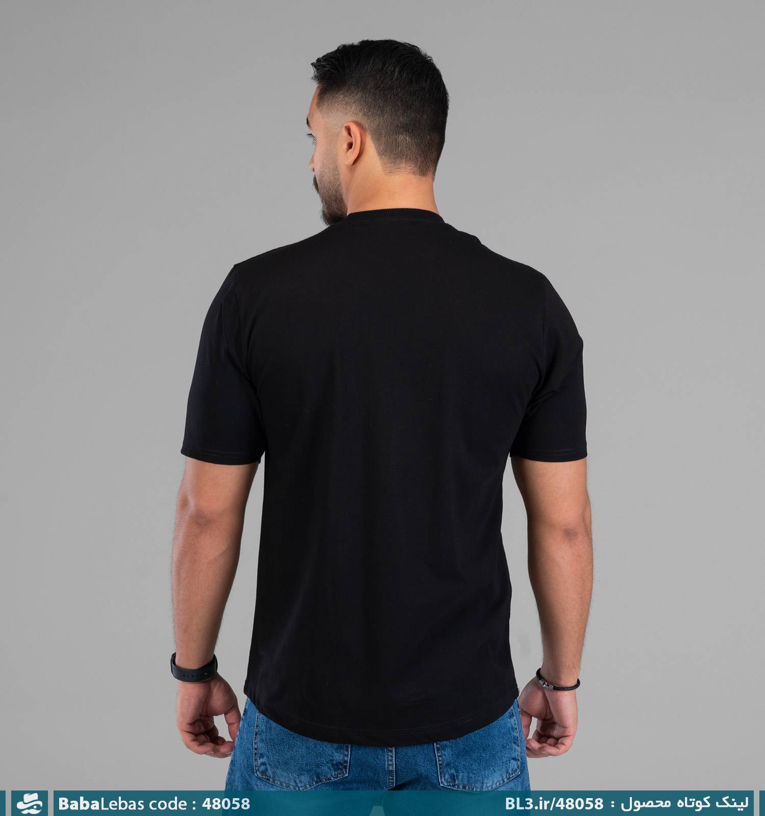 تیشرت یقه گرد مردانه مشکی نخ پنبه طرح دار مدل 48058
