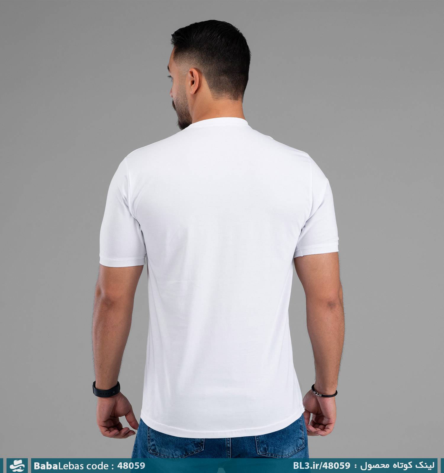 تیشرت یقه گرد مردانه سفید نخ پنبه ساده مدل 48059