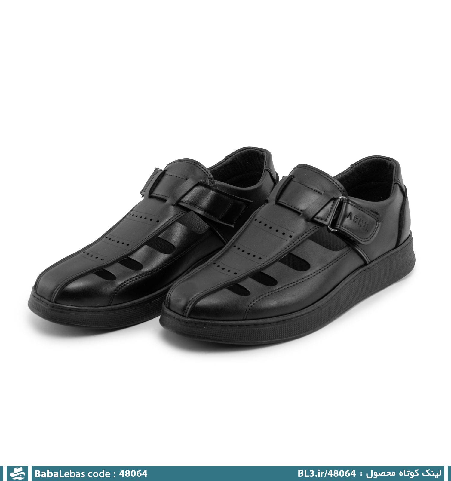 کفش صندل مردانه چرم مصنوعی مشکی چسبی مدل 48064