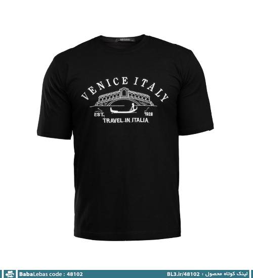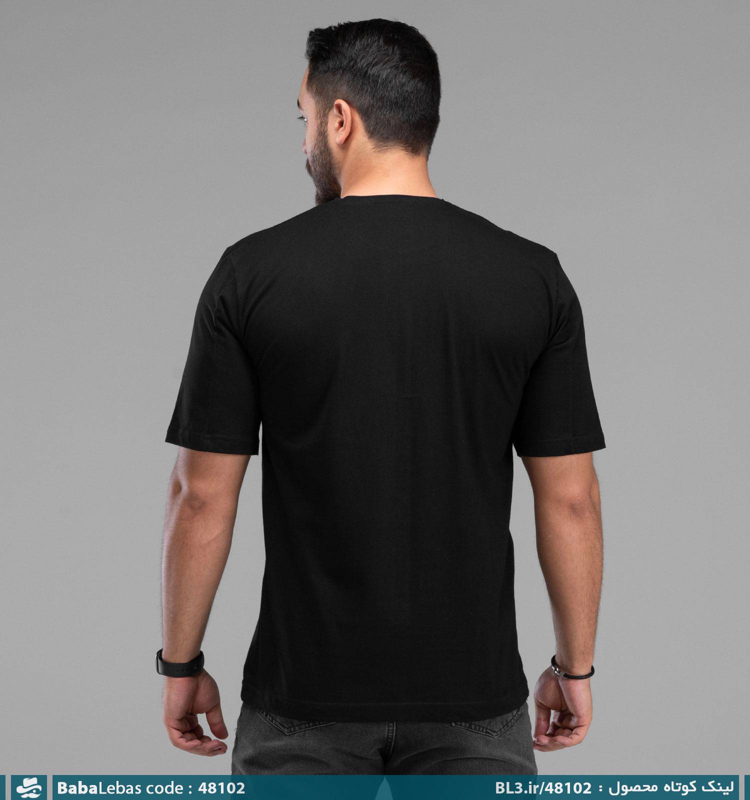 تیشرت یقه گرد مردانه مشکی نخ پنبه طرح دار مدل 48102