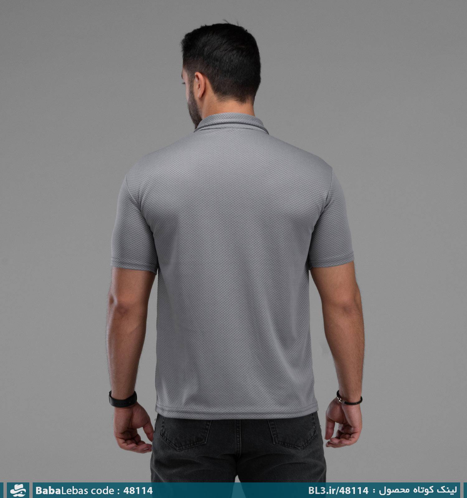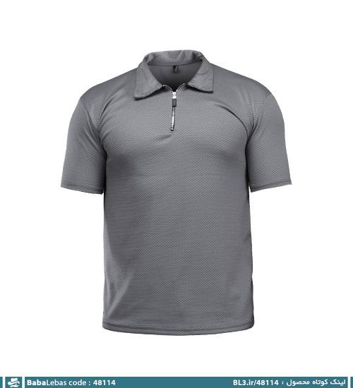 تیشرت یقه دار نیم زیپ مردانه طوسی نخ پنبه بیسکویتی مدل 48114