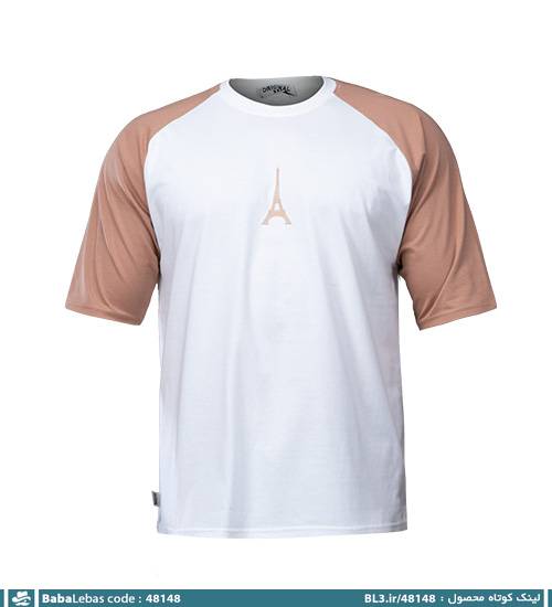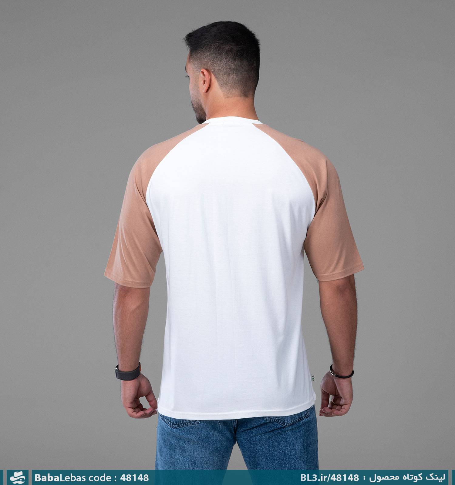 تیشرت یقه گرد مردانه باکسی سفید نخ پنبه طرح دار مدل 48148