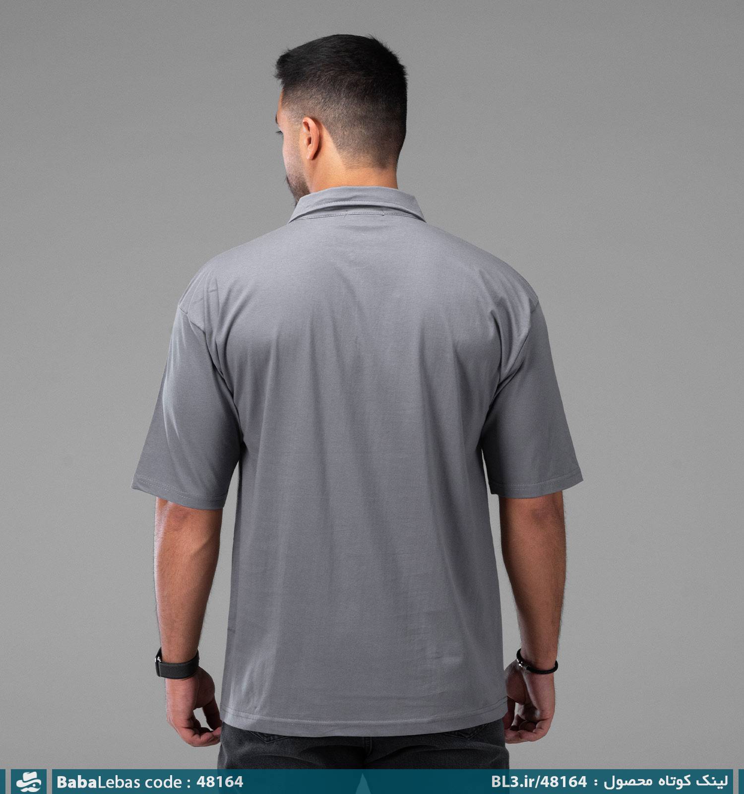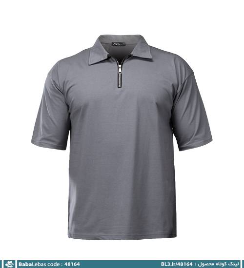 تیشرت یقه دار نیم زیپ مردانه طوسی نخ پنبه ساده مدل 48164