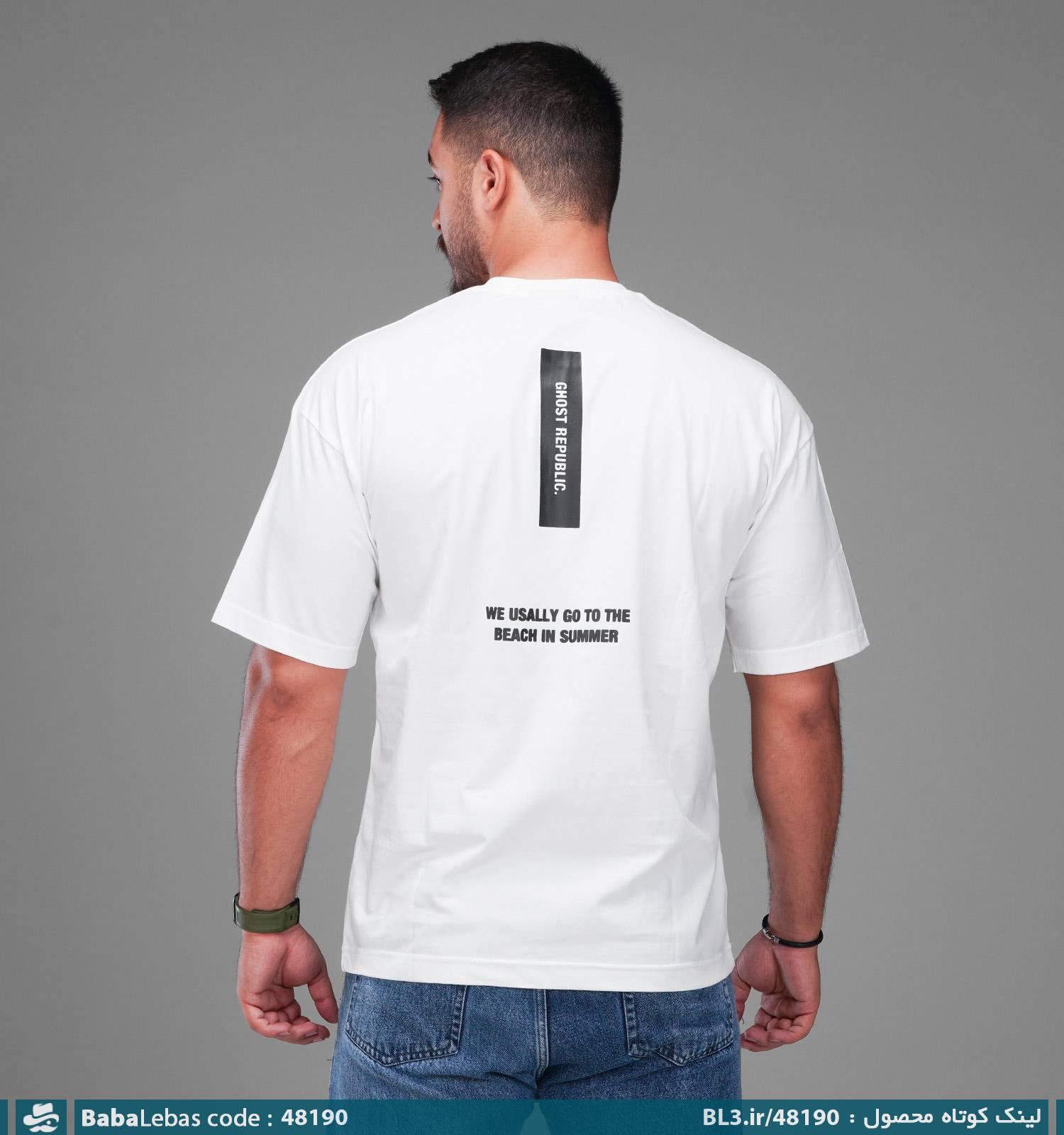 تیشرت یقه گرد مردانه سفید نخ پنبه طرح دار مدل 48190