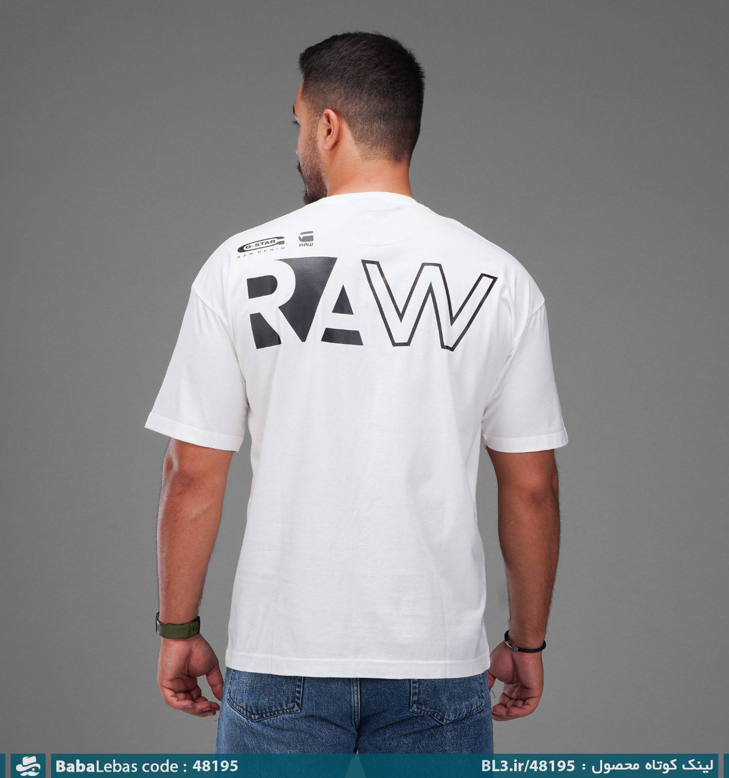تیشرت یقه گرد مردانه سفید نخ پنبه طرح دار مدل 48195