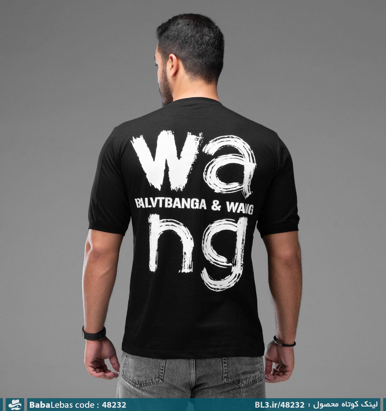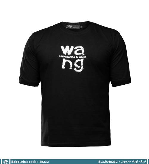 تیشرت یقه گرد مردانه مشکی نخ پنبه طرح دار مدل 48232