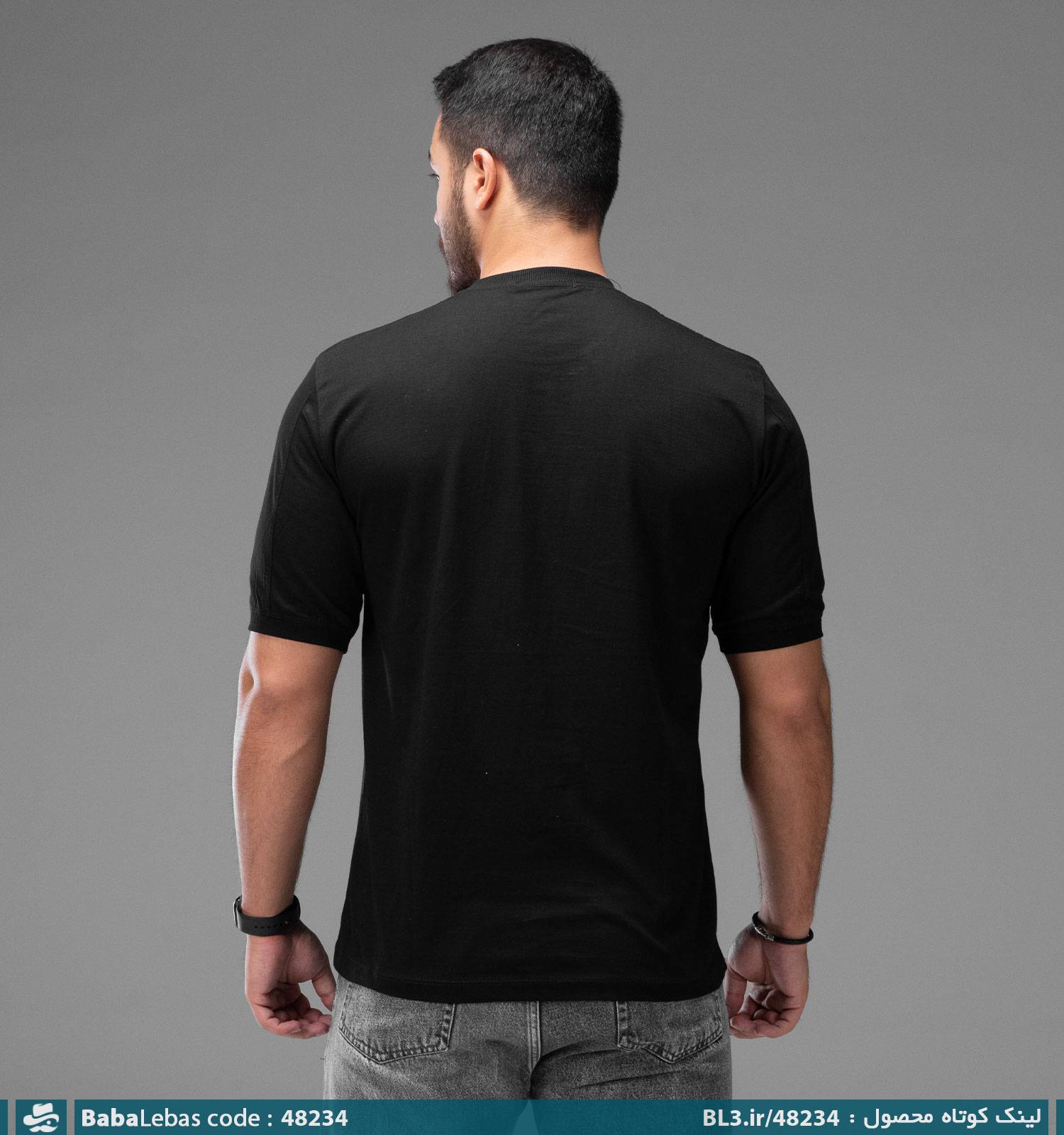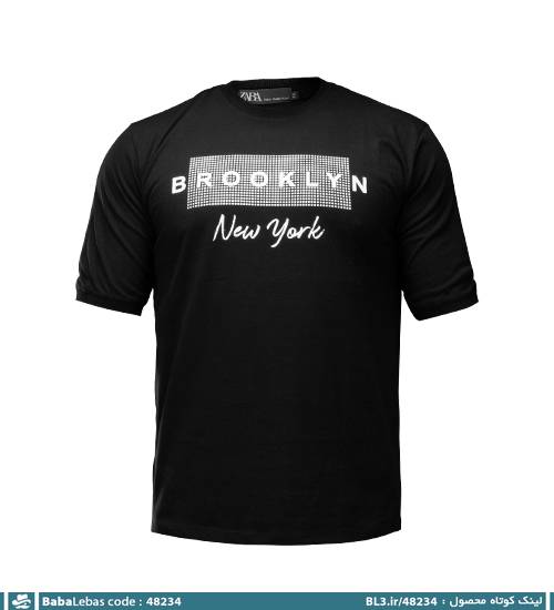 تیشرت یقه گرد مردانه مشکی نخ پنبه طرح دار مدل 48234