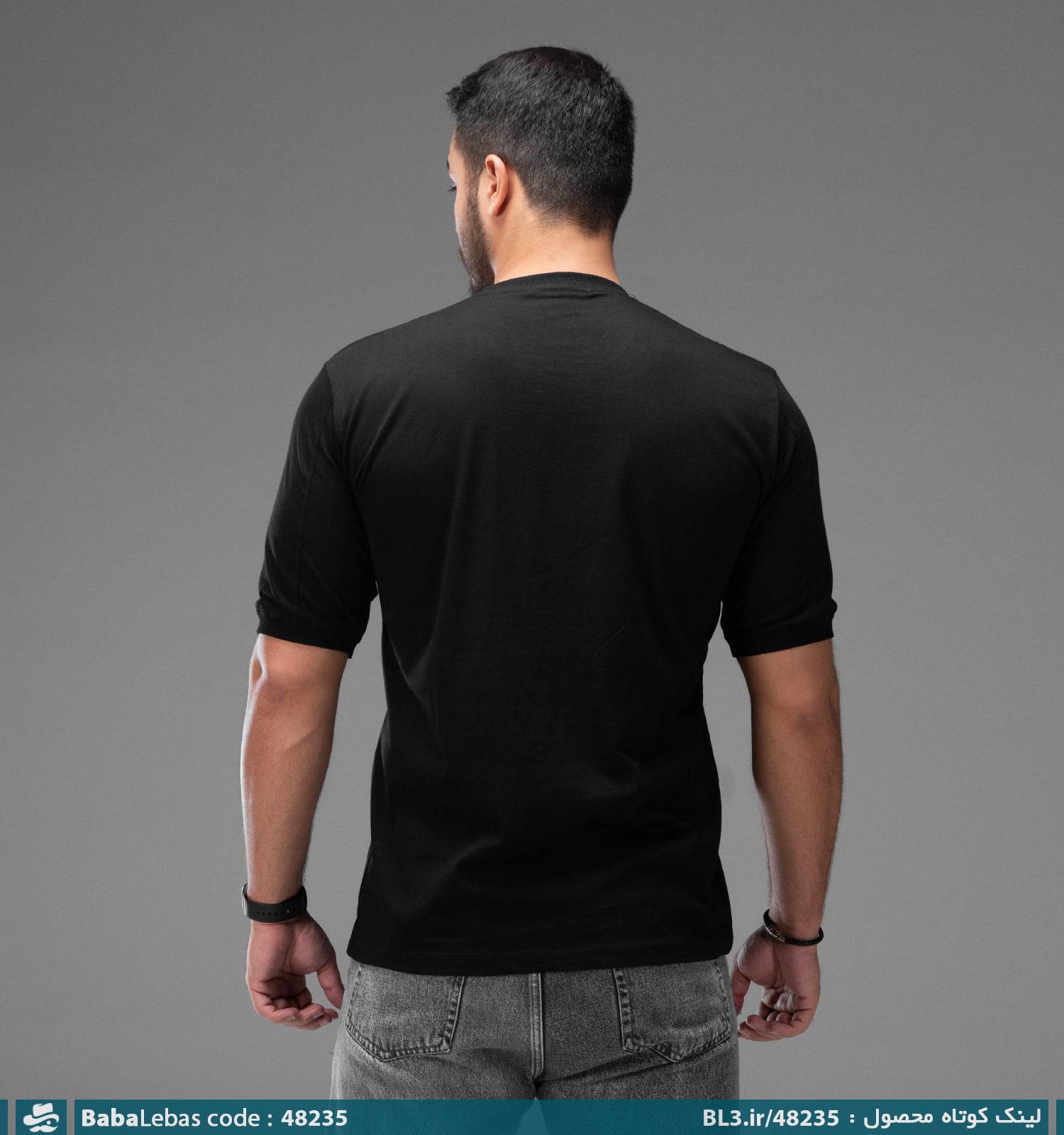 تیشرت یقه گرد مردانه مشکی نخ پنبه طرح دار مدل 48235