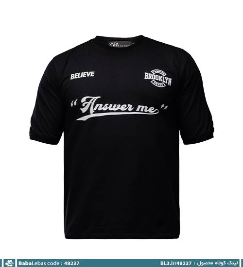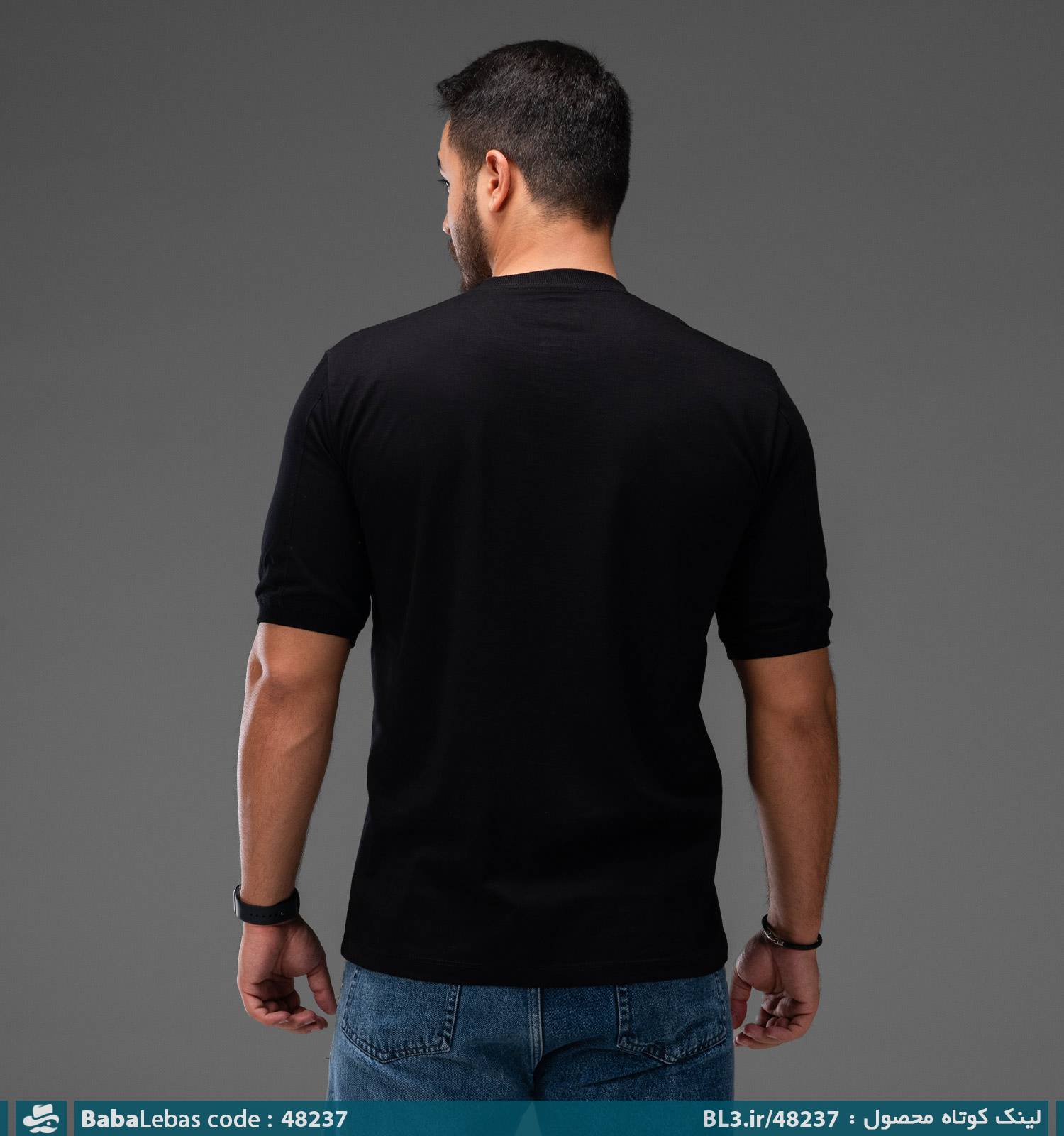 تیشرت یقه گرد مردانه مشکی نخ پنبه طرح دار مدل 48237