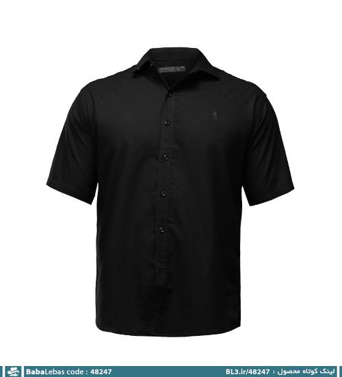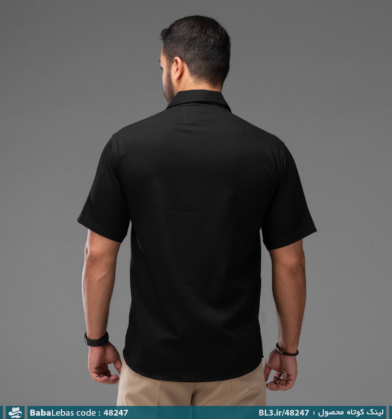 پیراهن نخی مردانه راه راه آستین کوتاه مشکی مدل 48247